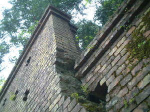 この接待館の煉瓦は注目の的です。木々が育って緑に覆われる山の中で