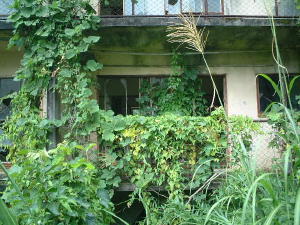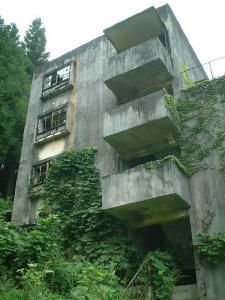 斜面にあわせて階段状になっている社宅アパートです。