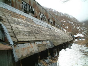 こんな重たい物を崩したのは人力でなく雪の重みなのでしょう。