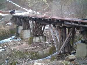 反対側の木製橋脚は外れかかっていてわたる勇気は起きませんでした。