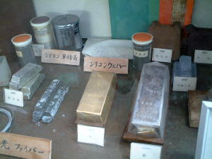 奥にあるガラスの中には精錬過程でできる物が容れてあります。