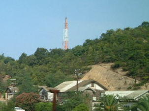 小山の上にそびえる巨大な煙突。