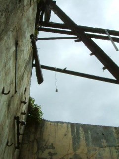 一枚残った扉は傾いで瓦礫に足元を埋められているためか
