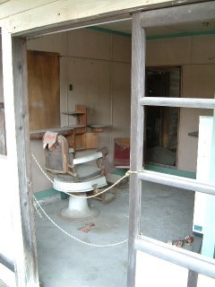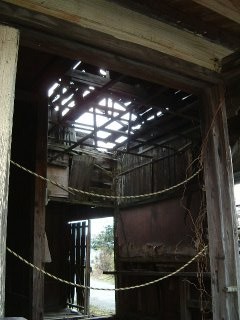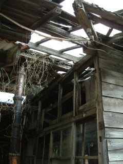 屋根が落ちてしまって立ち入り禁止ロープが張ってあって