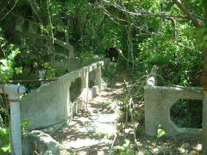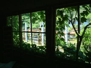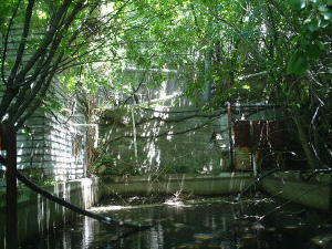 潅木に遮られていますが敷地内には水のたまっている水槽もあります。
