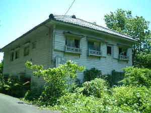 正面入り口横に鎮座する鉱山事務所です。