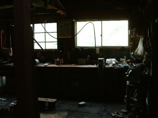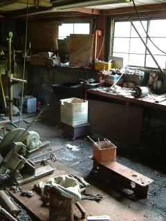 機械を整備するために使う工具や機材が沢山置いてあります。