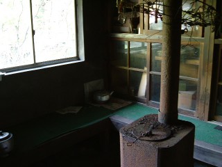 雪の頃にはこのストーブの温もりで窓はきっと結露で曇ったことでしょう。