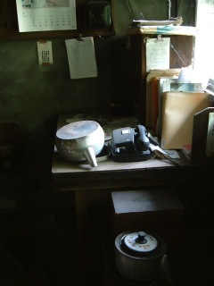 なぜか裏返しに置かれたやかん。