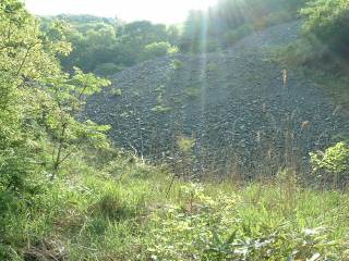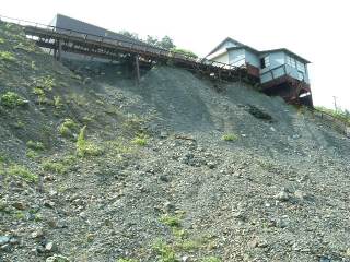 上部施設への道をズリ山の間をぬって上がります。