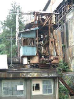 選鉱場事務所の屋根の上のこの機械はクレーンのようでしたが