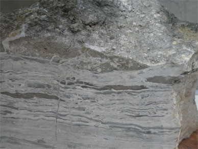 “本標本は、軟らかい泥岩の中に四方八方から注入材が圧入されて