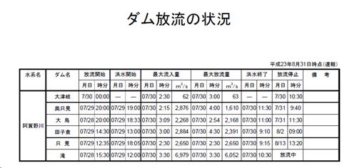 新潟・福島豪雨に伴うダム放流について(速報)《平成23年7月27日~7月30日》