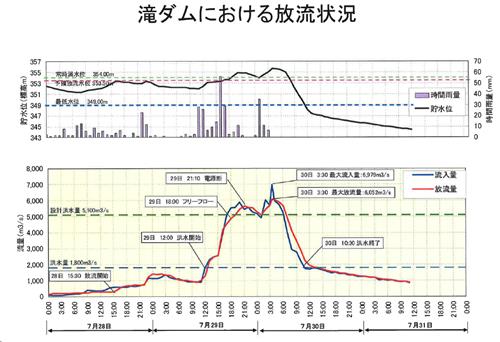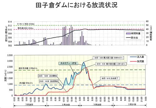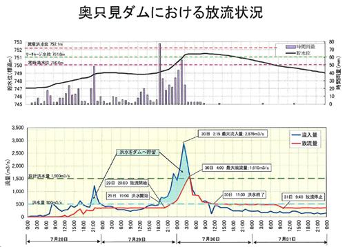 田子倉ダムの洪水開始時間は7月29日13:00で放流開始は14:30