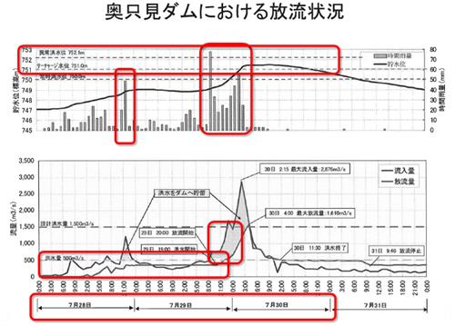奥只見ダムの洪水開始時間は7月29日19:00で放流開始は20:00