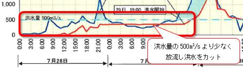 ここでも下流を見て、早い段階から洪水量を下回る量に絞っているのです。