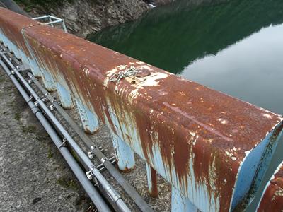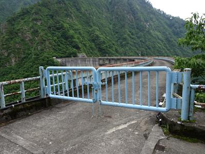天端は極太鉄パイプのゲートで締め切られています。