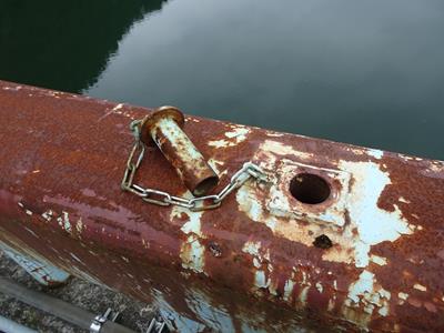 高欄で一定間隔で鉄蓋に繋がれた鎖がありました。