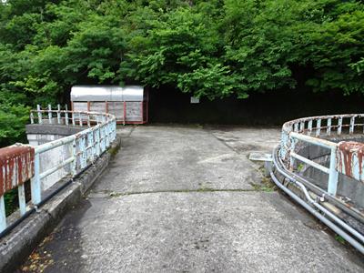 堤体の横を山肌と同じ角度で急勾配で設けられている隧道型の管理通路から