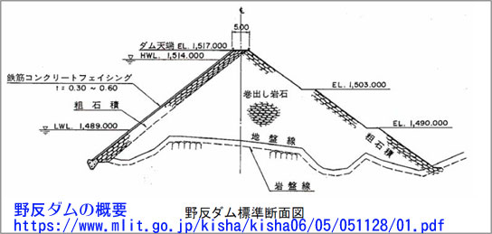 これが野反ダムの断面図です。